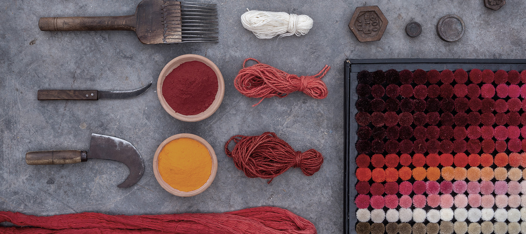 Step 3. Once the sample is approved, yarns are dyed and a full size rug is handcrafted.