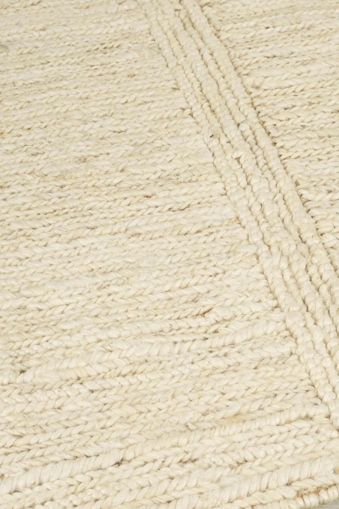 On horizontal looms, artisans pass the weft yarns carefully through the warp, beating them tightly into place to form a strong, flat surface to create a tactile, versatile flatweave.