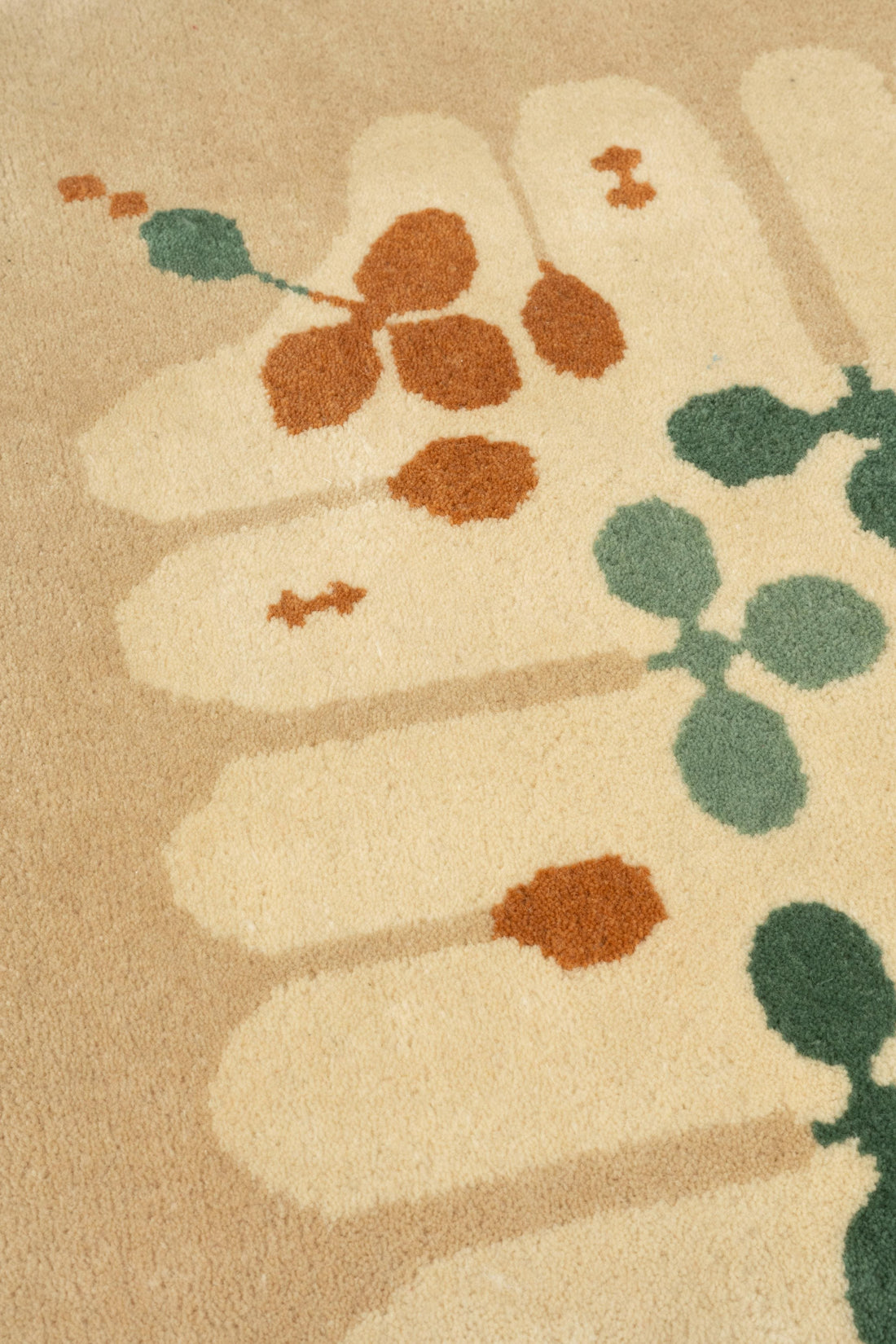 Hand-tufted rugs are created with strands of wool punched through the backing using a handheld tufting tool. Once the design is complete, a layer of backing is applied to secure the tufts, and the surface is sheared to reveal a soft, even pile. The pile can be sheared into various heights and patterns, allowing for variations in both feel and design and creating a hardwearing, soft finish.