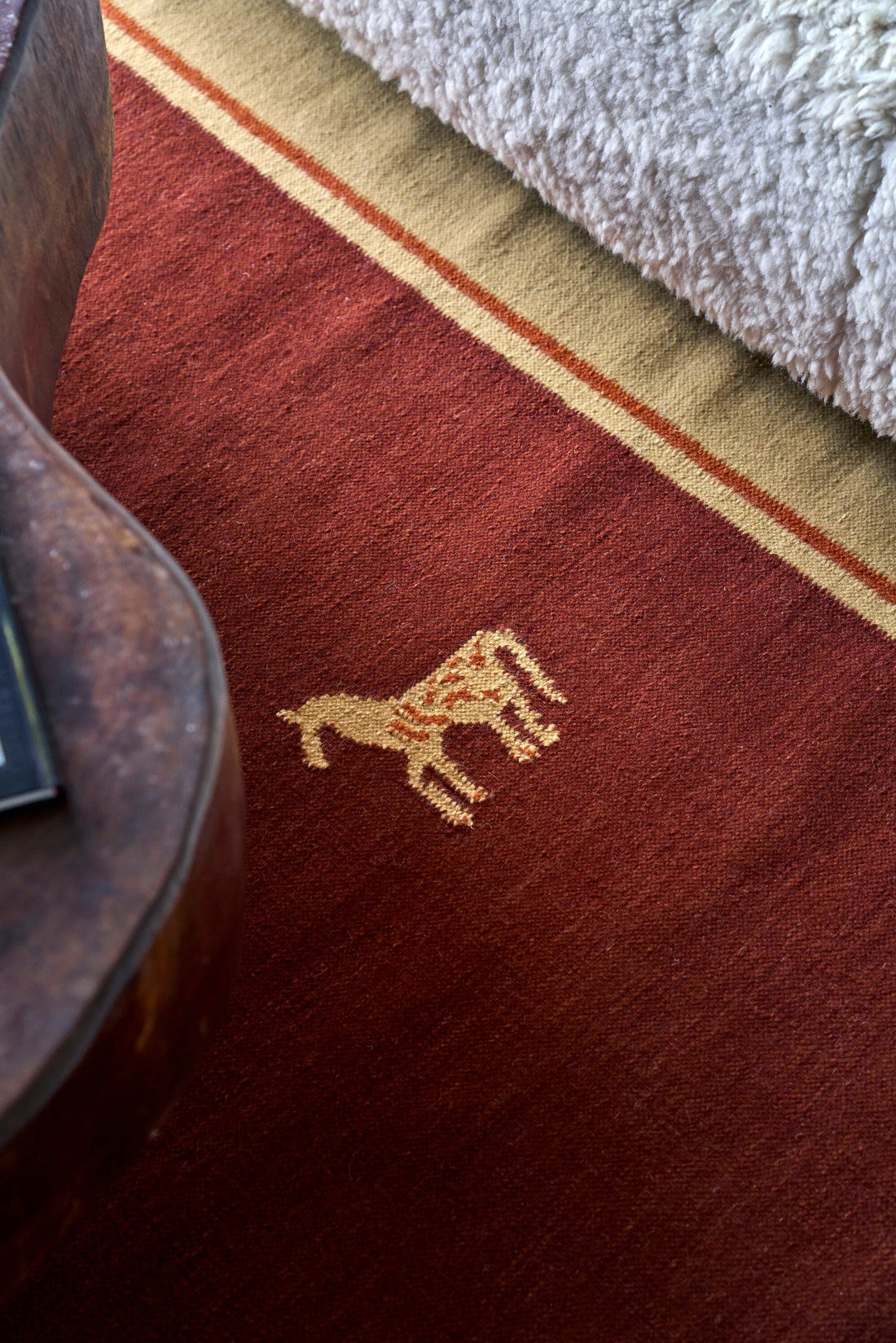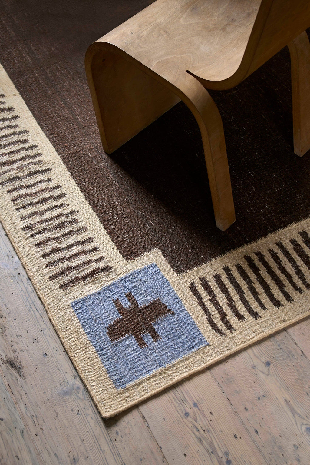 On horizontal looms, artisans pass the weft yarns carefully through the warp, beating them tightly into place to form a strong, flat surface to create a tactile, versatile flatweave.