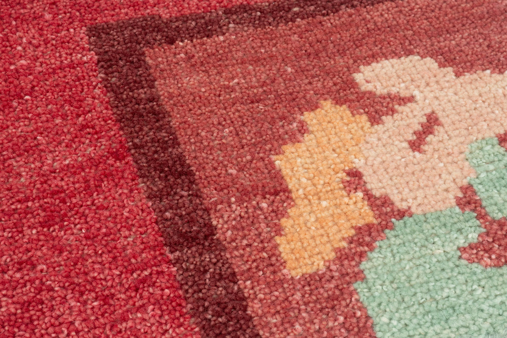 Originating in Tibet, this weaving method wraps yarn carefully around two warps and a temporary rod. Once the rod is covered with loops, a cut is made to form a pile. Composed of thousands of individual knots, it requires highly skilled artisans and time, making them very high quality and long.