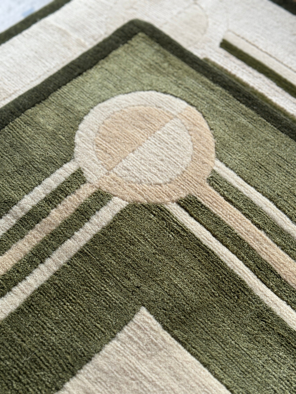 Hand-tufted rugs are created with strands of wool punched through the backing using a handheld tufting tool. Once the design is complete, a layer of backing is applied to secure the tufts, and the surface is sheared to reveal a soft, even pile. The pile can be sheared into various heights and patterns, allowing for variations in both feel and design and creating a hardwearing, soft finish.