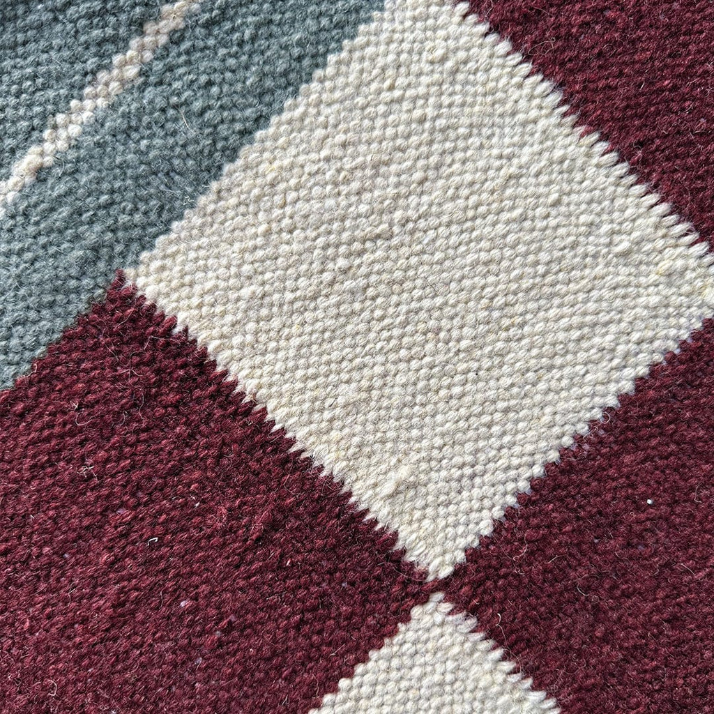 On horizontal looms, artisans pass the weft yarns carefully through the warp, beating them tightly into place to form a strong, flat surface to create a tactile, versatile flatweave.