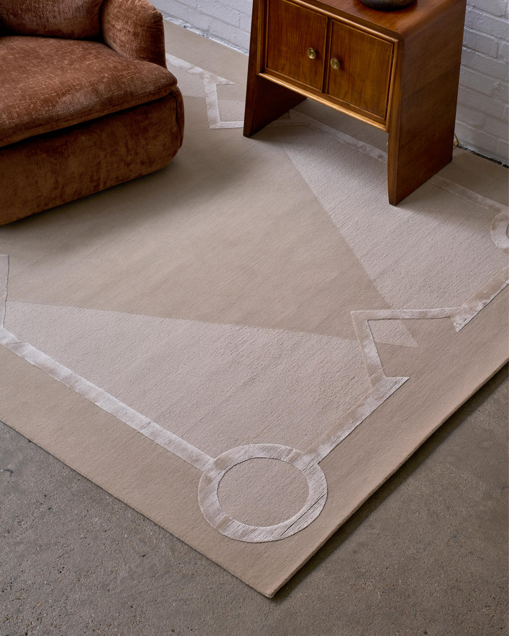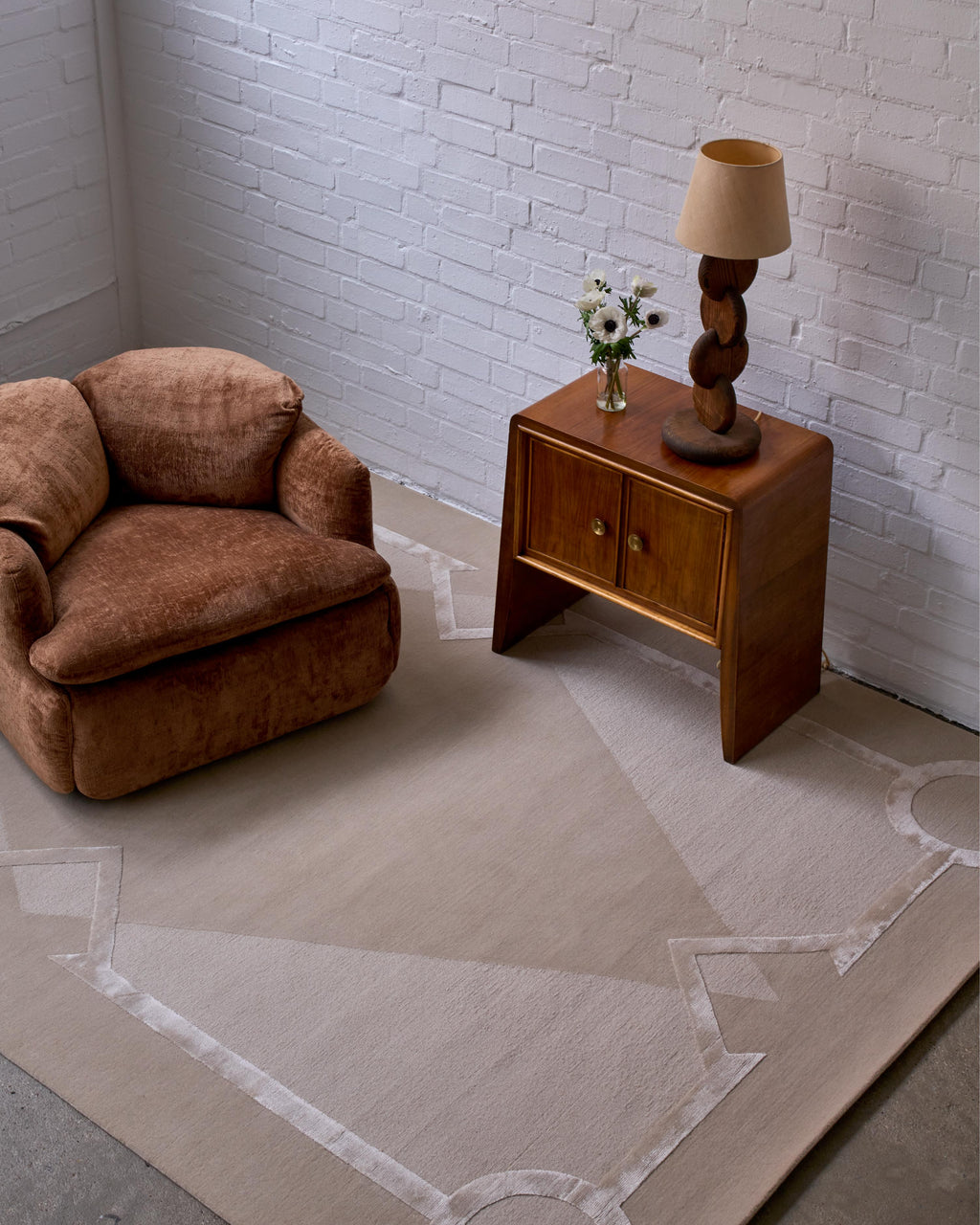 Bold yet elegant, Lume draws on the geometric glamour of Art Deco design, translating its iconic symmetry into a modern, tactile rug. Clean lines and layered shapes create a sense of movement and sophistication, making it a striking focal point in any interior.