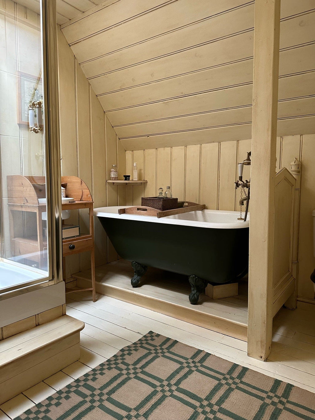 Hand-tufted rugs are created with strands of wool punched through the backing using a handheld tufting tool. Once the design is complete, a layer of backing is applied to secure the tufts, and the surface is sheared to reveal a soft, even pile. The pile can be sheared into various heights and patterns, allowing for variations in both feel and design and creating a hardwearing, soft finish.