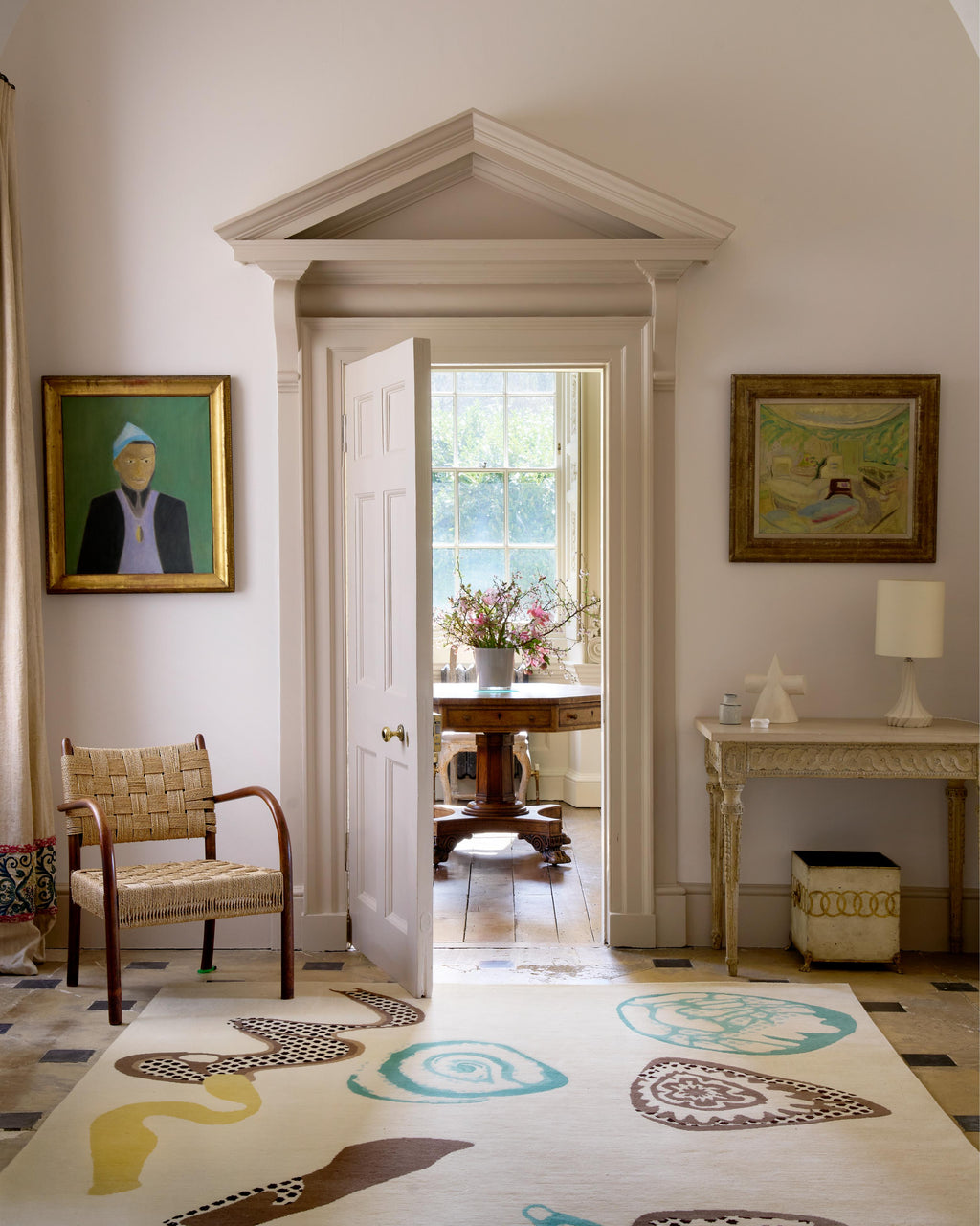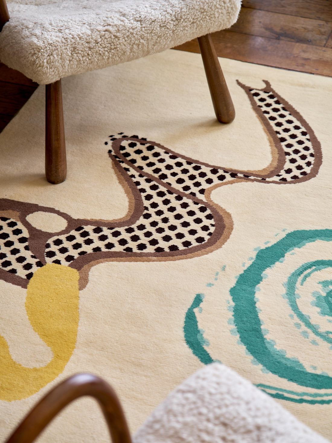 Hand-tufted rugs are created with strands of wool punched through the backing using a handheld tufting tool. Once the design is complete, a layer of backing is applied to secure the tufts, and the surface is sheared to reveal a soft, even pile. The pile can be sheared into various heights and patterns, allowing for variations in both feel and design and creating a hardwearing, soft finish.