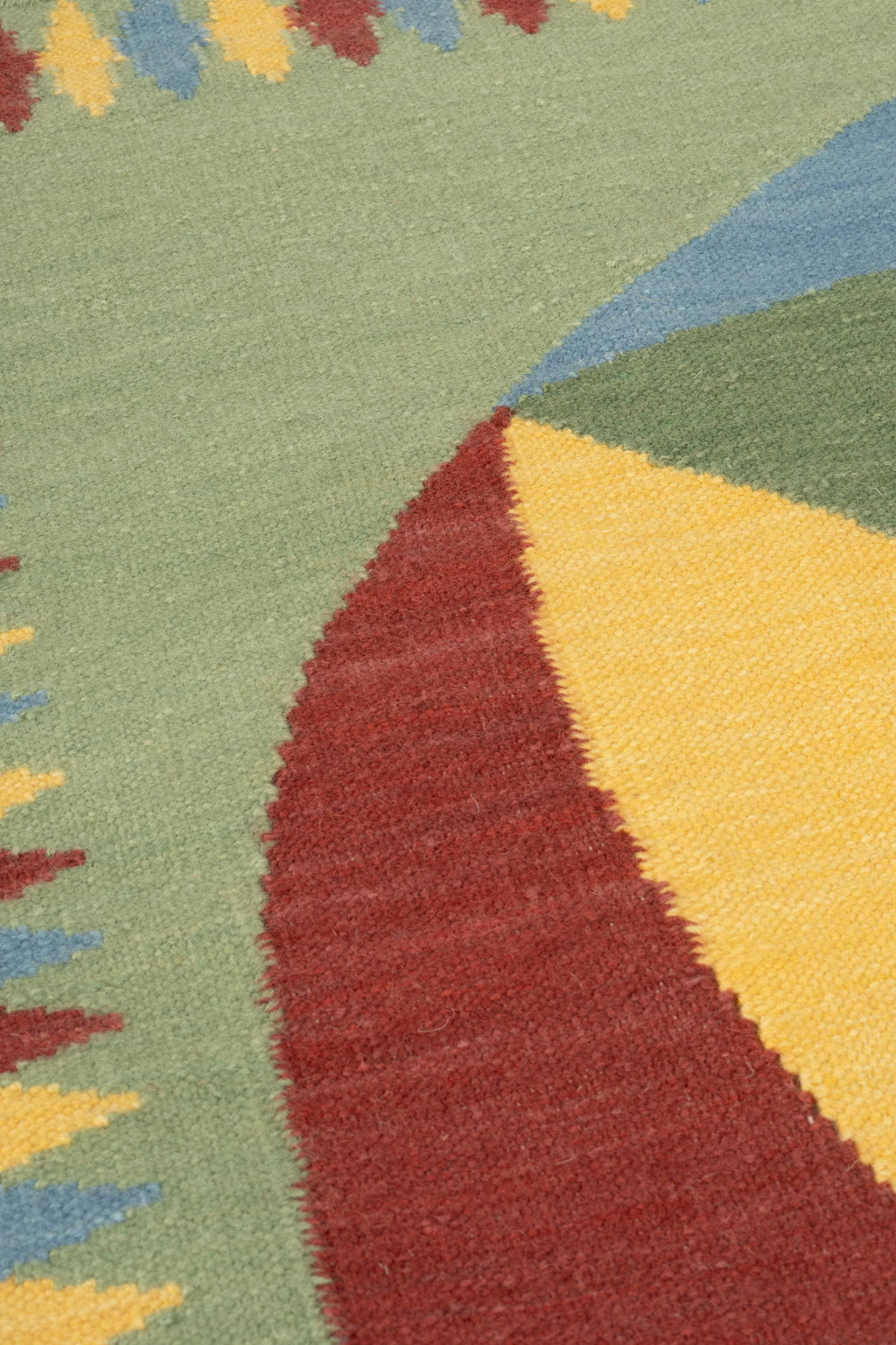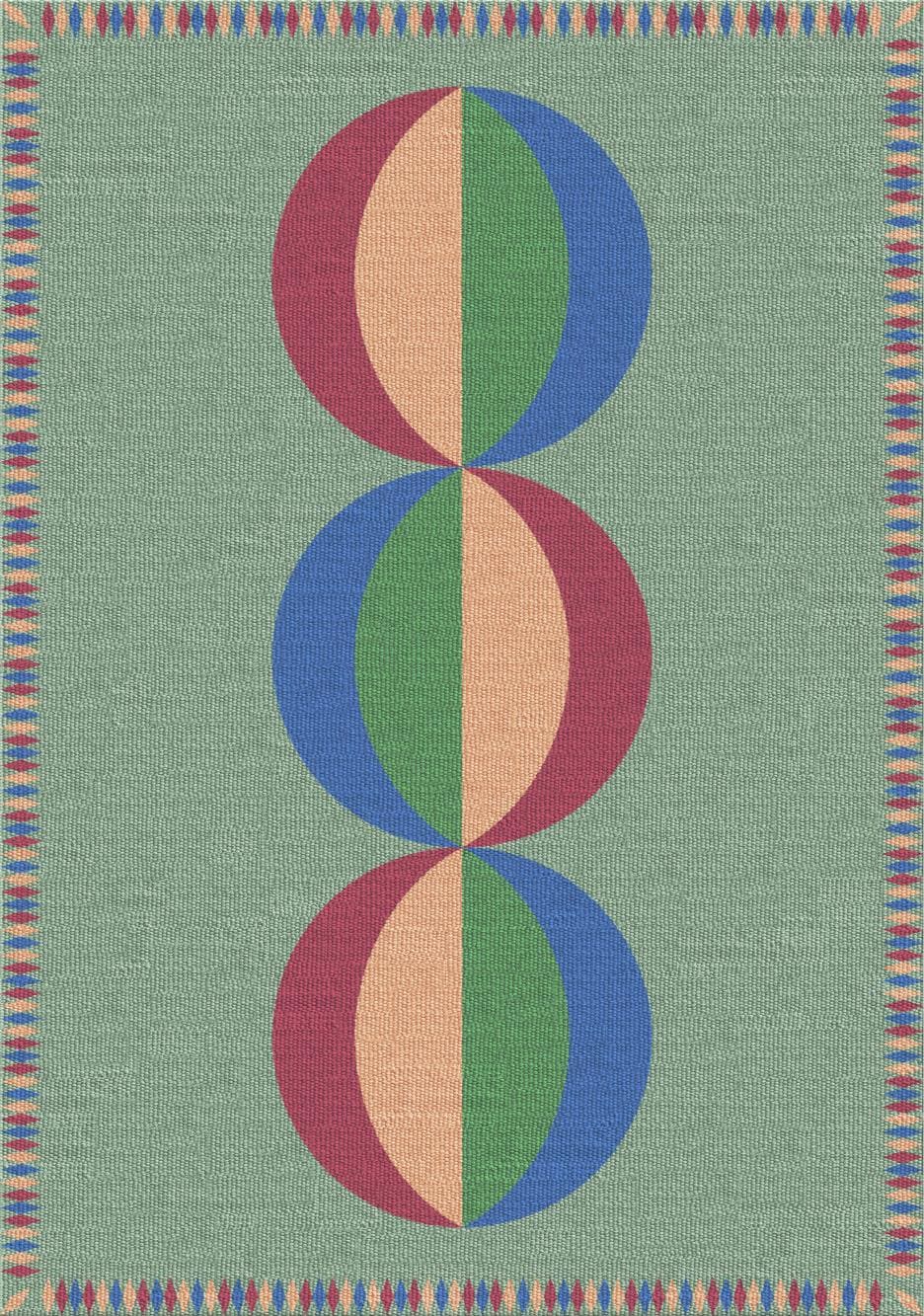 Orbit evokes the graceful movement of planetary orbits, in playful colours excellent for children's nerseries. Handwoven in flatweave wool, Orbit offers both style and durability and can be customised to suit the colours of any room.