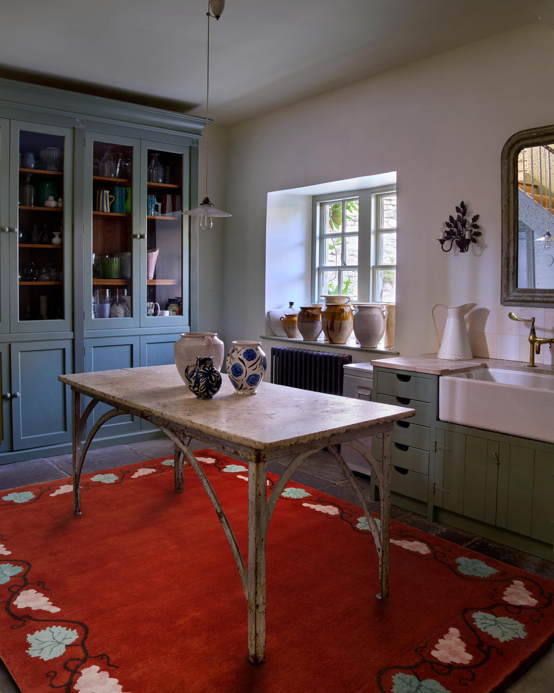 Hand-tufted rugs are created with strands of wool punched through the backing using a handheld tufting tool. Once the design is complete, a layer of backing is applied to secure the tufts, and the surface is sheared to reveal a soft, even pile. The pile can be sheared into various heights and patterns, allowing for variations in both feel and design and creating a hardwearing, soft finish.